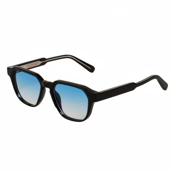 Optez pour un look moderne et audacieux avec ces lunettes de soleil noires à monture épaisse et verres dégradés bleus . Élégantes, confortables et tendance, elles ajoutent instantanément du style à toutes vos tenues estivales.