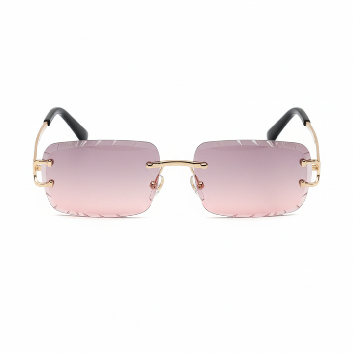 Faites sensation avec ces lunettes de soleil rectangulaires sans monture aux verres rose dégradé et détails dorés raffinés. Légères, élégantes et audacieuses, elles apportent une touche glamour et moderne à toutes vos tenues.