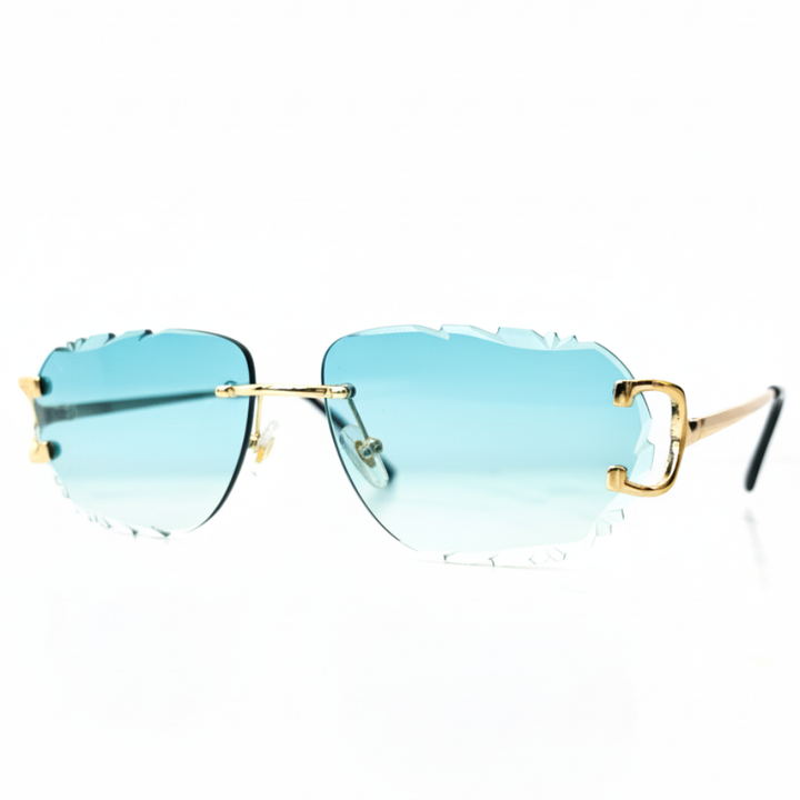 ATRIA BLU TURCHESE - Lunettes de Soleil Sans Monture Bleu Turquoise Dégradé à Découpe Dentelée - Branches Dorées