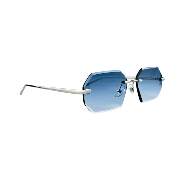 Apportez une touche contemporaine à votre style avec ces lunettes de soleil sans monture au design géométrique chic. Équipées de verres bleus dégradés certifiés UV400, elles garantissent une protection complète contre les rayons UVA et UVB tout en assurant un confort visuel optimal. Leur monture fine en métal argenté allie élégance et légèreté, tandis que les plaquettes réglables assurent un ajustement personnalisé. Parfaites pour sublimer vos tenues estivales, elles combinent qualité premium, esthétique moderne et performance visuelle.